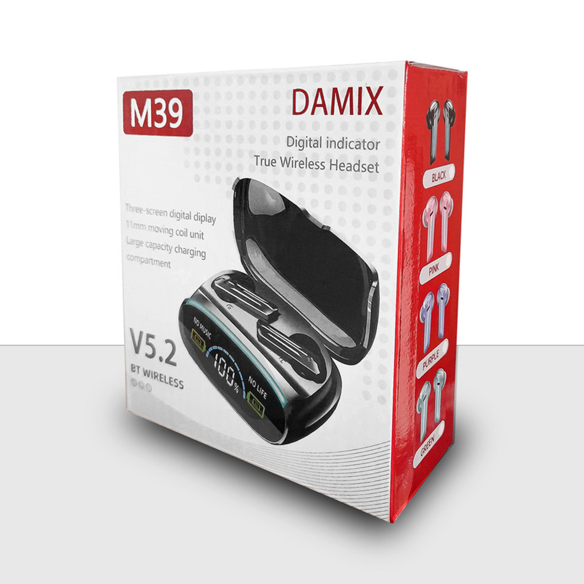 هندزفری بی سیم مدل M39 یکی از محصولات شاخص سری M محسوب می شود که با طراحی بر اساس تکنولوژی روز دنیا، زیبا و متریال مرغوب و همچنین با نمایشگر بزرگ جذابش یکی از بهترین گزینه ها در این بازه قیمتی به حساب می آید. این هندزفری به لطف نسخه بلوتوث 5.2 اتصالی بسیار پایدار، با مصرف انرژی کم و با تاخیر بسیار پایینی دارد و تقریبا تمامی دستگاه های دارای قابلیت بلوتوث را پشتیبانی می کند. درایورهای 11 میلیمتری هندزفری M39 کیفیت صدا و تفکیک بسیار خوبی دارد و به خوبی صداهای بالا و متوسط را تشخیص می دهد. استفاده از سیستم حذف نویز هوشمند به همراه میکروفون با دیافراگم پلیمری باعث شده است در هنگام مکالمه کیفیت صدای بسیار واضح و خوبی را داشته باشید. با استفاده از هندزفری ها می توانید 5 ساعت موسیقی گوش دهید یا مکالمه کنید که با استفاده از محفظه شارژ با باتری 1200 میلی آمپر ساعتی این عدد تا 60 ساعت افزایش پیدا می کند. در این هندزفری حالت گیمینگ هم برای کاهش تاخیر در بازی ها استفاده شده که باعث می شود تاخیر بسیار ناچیزی را موقع بازی داشته باشید. رعایت استاندارد IPX7 در هندزفری مدل M39 باعث می شود هیچ نگرانی از محافظت در مقابل ذرات آب و عرق نداشته باشید.