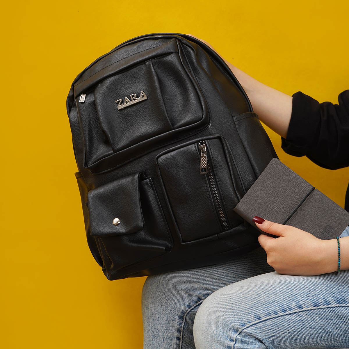 کوله پشتی چرم زنانه مشکی مدل ZARA