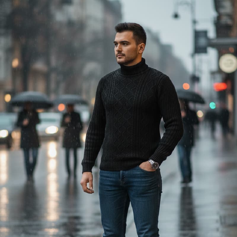 پلیوربافت مردانه مشکی یقه اسکی مدل Hakan
