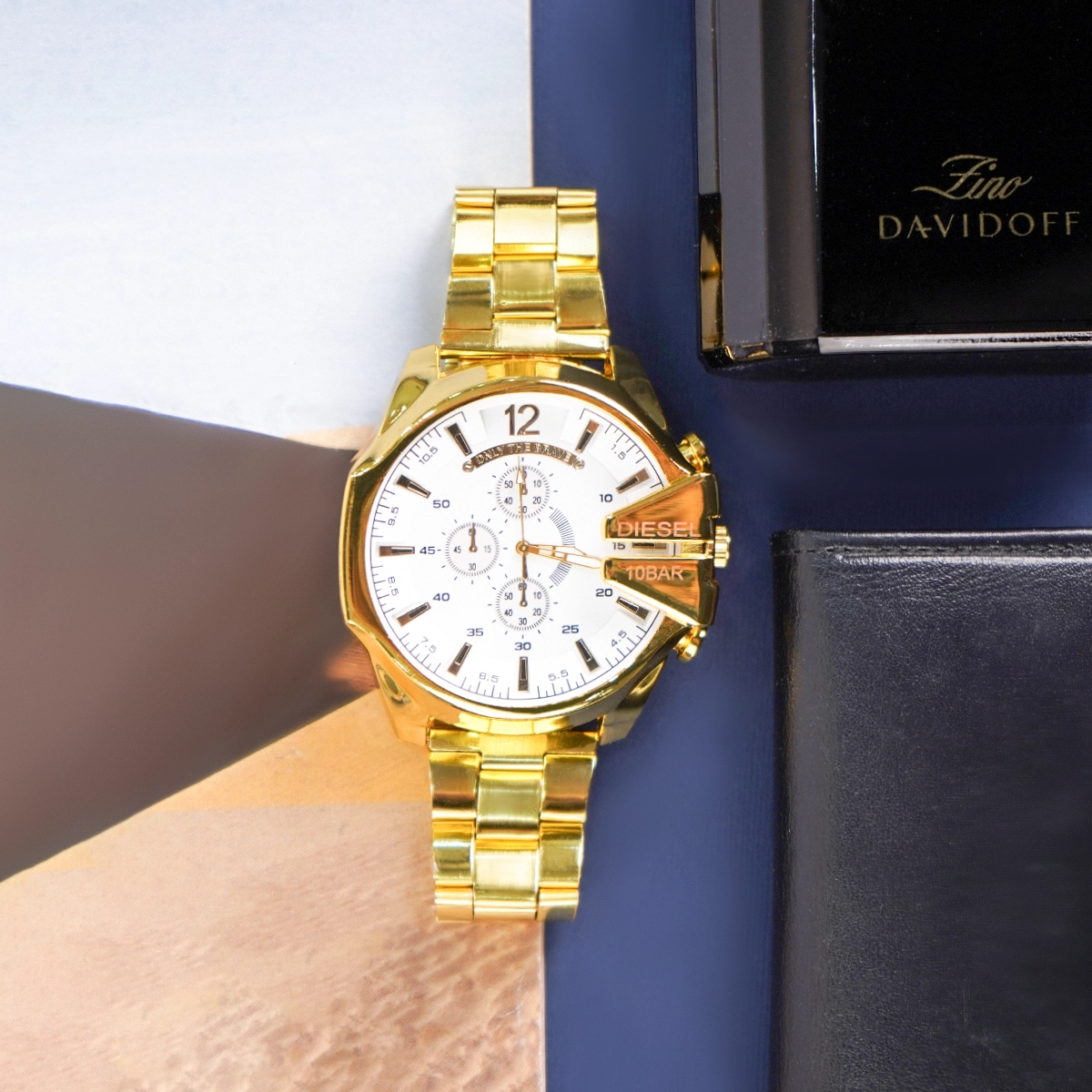 ساعت مچی DIESEL مردانه طلایی صفحه سفید مدل U700