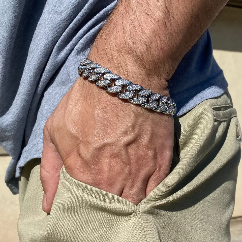 دستبند نقره ای کارتیر مردانه مدل فول نگین