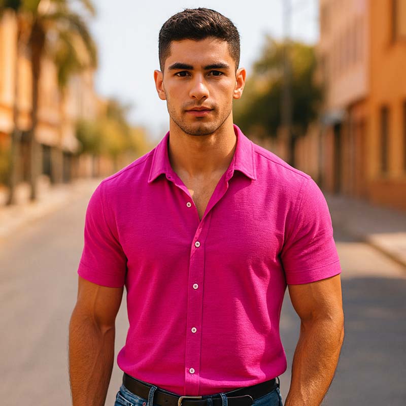 پیراهن آستین کوتاه صورتی مردانه مدل باکسی