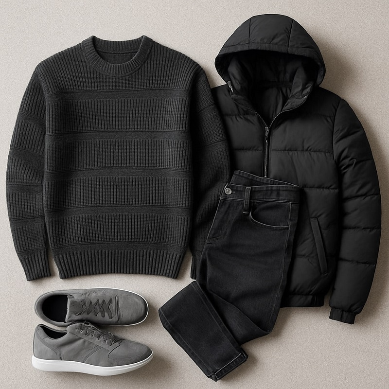 پلیور بافت مردانه یقه گرد مدل Arman-مشکی